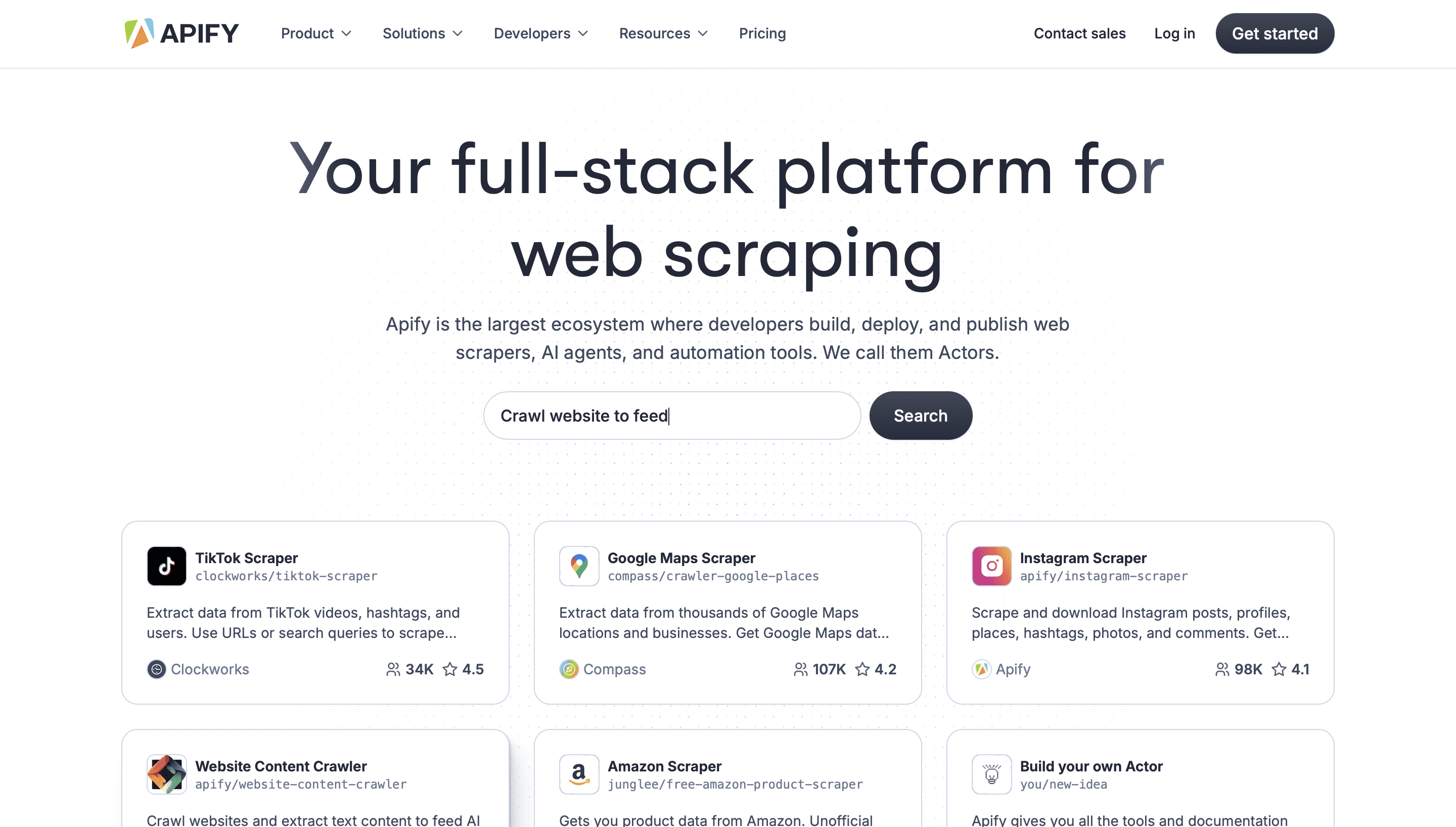 Apify has revolutionized web scraping through its comprehensive marketplace approach. Rather than building scrapers from scratch, teams can access an extensive library of pre-built extractors for popular websites and platforms.